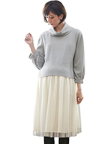 Angeliebe エンジェリーベ マタニティ ワンピース 授乳口付き ニット & チュール 異素材 レイヤード ワンピ 産前 産後 妊婦服 M ~ L ライト グレー × アイボリー 21723 21723102