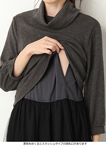 - ●【産前~産後まで着られる授乳口付ワンピース】ふんわりニットソーとゴージャスなチュールの組み合わせワンピ。表地をめくるとスラッシュタイプの授乳口があります。