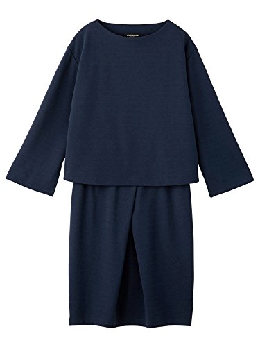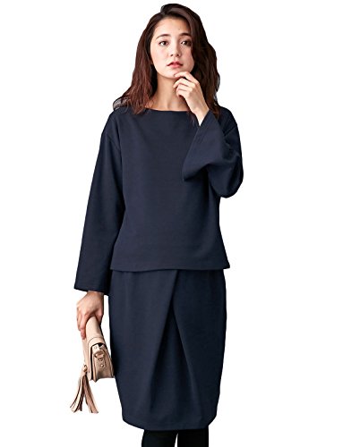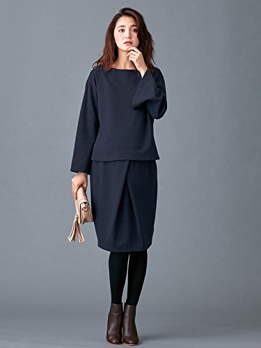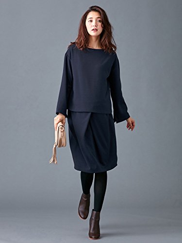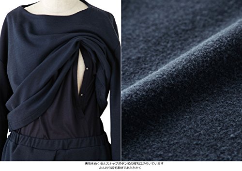 Angeliebe エンジェリーベ 授乳 口 付 裏 起毛 ポンチ ボートネック レイヤード ワンピース M ~ L ネイビー