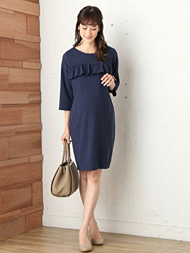 Angeliebe エンジェリーベ マタニティ ワンピース 授乳口付き フロント ラッフル フリル ワンピ 妊婦服 産前 産後 お呼ばれ フリー ネイビー 21911 21911200