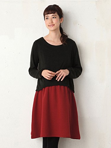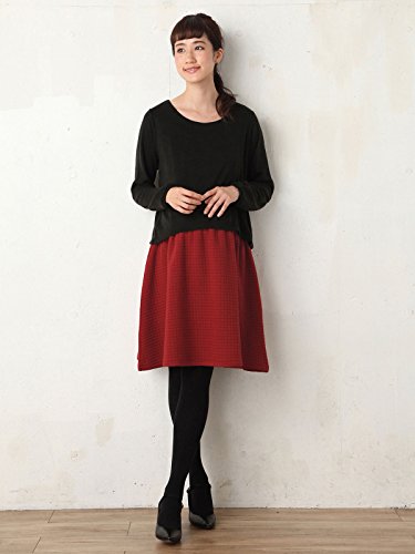 Angeliebe エンジェリーベ 授乳口 付 ニットソー × ボンディング ドッキング ワンピース マタニティ 産前 産後 妊婦服 授乳服 長袖 フリー ブラック × レッド