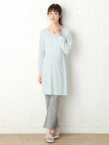 Angeliebe エンジェリーベ マタニティ パジャマ 授乳口付き ふんわり パターン メッシュ チュニック & レギンス セット ナイティ 妊婦服 産前 産後 S ~ M ブルー 21780 21780301