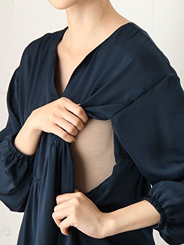 Angeliebe エンジェリーベ マタニティ ワンピース 授乳口付き デシン ギャザー ワンピ 妊婦服 産前 産後 M ネイビー 21862 21862360