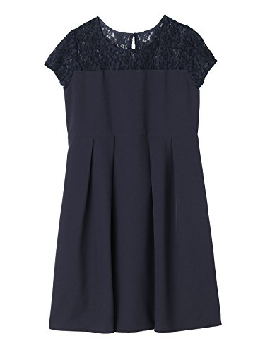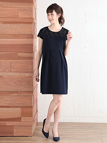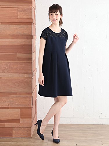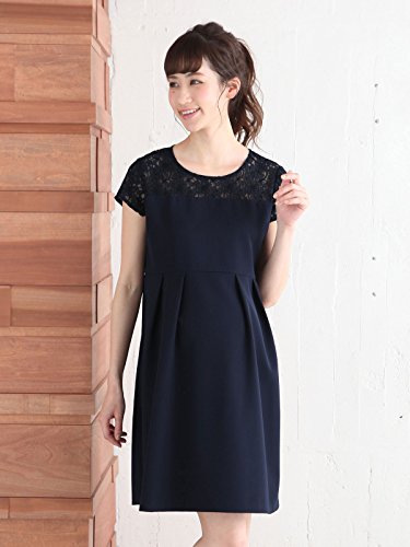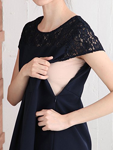 Angeliebe エンジェリーベ マタニティ ワンピース 授乳口付き レース 切替 タック ワンピ 妊婦服 産前 産後 半袖 お宮参り S ~ M ネイビー 21922 21922201
