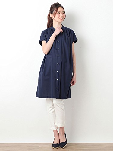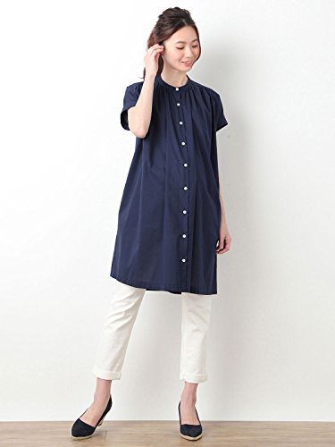 Angeliebe エンジェリーベ マタニティ ワンピース 授乳しやすい コットン ボイル ギャザー シャツ ワンピ 妊婦服 産前 産後 半袖 フリー ネイビー 21999 21999300