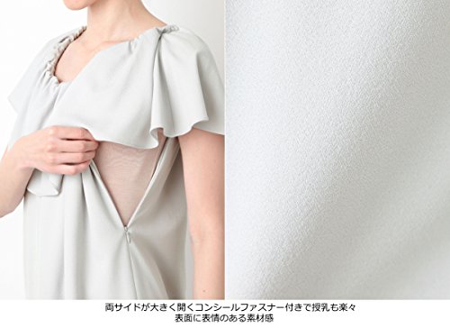 - ●【産前~産後まで使える授乳口付き2WAYフリルワンピース】ネックラインを引き下げて、トレンドのオフショルダースタイルも楽しめる2WAYデザインです。両サイドが大きく開くコンシールファスナー付きで授乳も楽々。