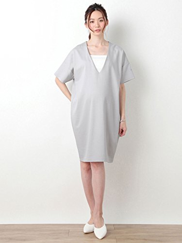 Angeliebe エンジェリーベ マタニティ ワンピース 授乳しやすい Vネック ワンピ & チューブトップ 妊婦服 産前 産後 セット S ~ M ライト グレー 21998 21998201
