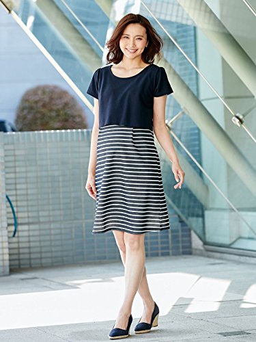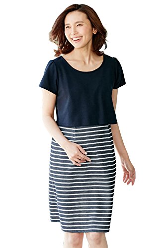 Angeliebe エンジェリーベ マタニティ ワンピース 授乳口付き 織柄 ポンチ フェイク レイヤード風 ワンピ 妊婦服 産前 産後 M ネイビー 21942 21942270