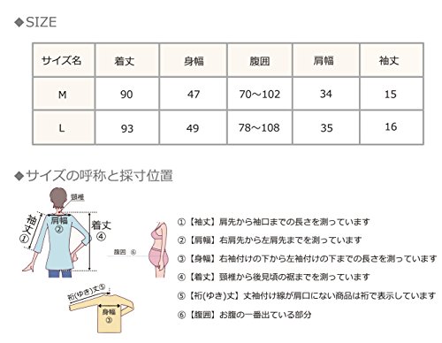- ●サイズL:着丈93㎝、身幅49㎝、腹囲78~108㎝、肩幅35㎝、袖丈16㎝