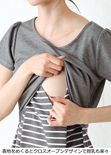 - ●【産前~産後まで使える授乳口付き織柄ポンチフェイクレイヤード風ワンピース】凹凸感のあるキレイめ素材。表地をめくるとクロスオープンデザインで授乳も楽々です。着脱しやすいバックファスナーで後ろ姿のアクセント。マリンスタイルにぴったりなボーダーをキレイめに着こなせるアイテムです。