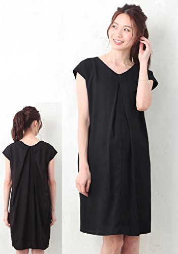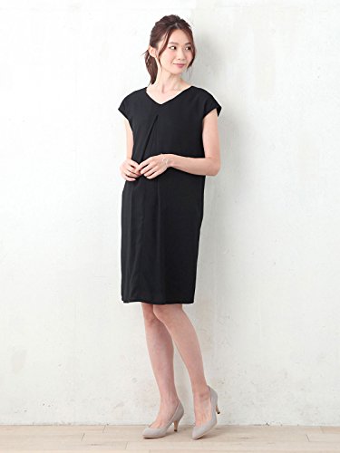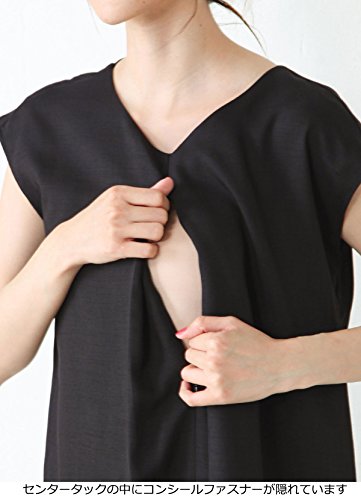 Angeliebe エンジェリーベ マタニティ ワンピース 授乳口付き 麻調 合繊 コクーン タック ワンピ 妊婦服 産前 産後 L ブラック 21944 21944170