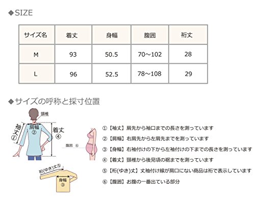 - ●サイズL:着丈96㎝、身幅52.5㎝、腹囲78~108㎝、裄丈29㎝