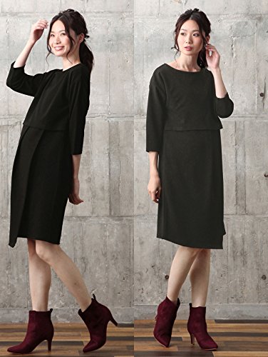 Angeliebe エンジェリーベ マタニティ ワンピース 授乳口付き ジョーゼット タッチ 強撚 スムース ラップ ワンピ 妊婦服 産前 産後 L ブラック 22102 22102170