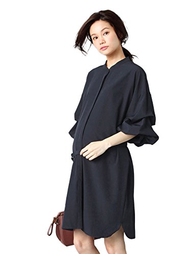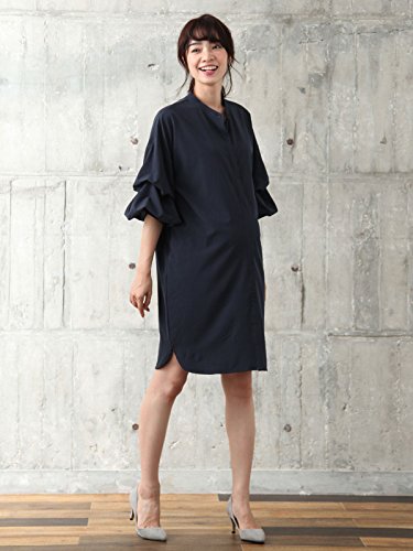 Angeliebe エンジェリーベ マタニティ ワンピース 授乳しやすい ストレッチ ローン ボリューム スリーブ ワンピ 妊婦服 産前 産後 フリー ネイビー 22208 22208300