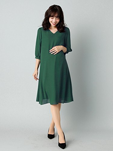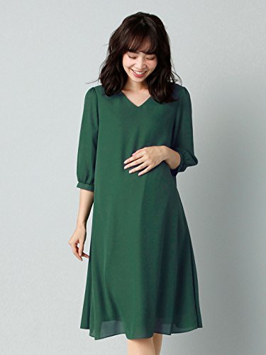 Angeliebe エンジェリーベ マタニティ ワンピース 授乳口付き シフォン バックシャン ワンピ 妊婦服 産前 産後 お宮参り S ~ M グリーン 21928 21928501