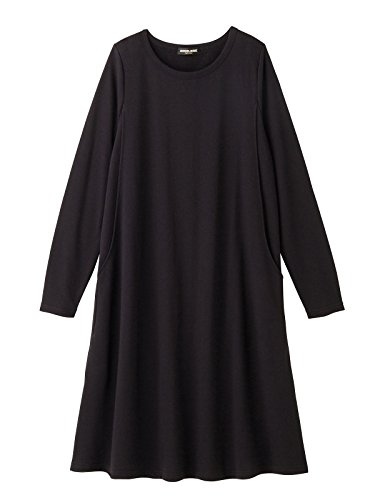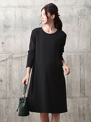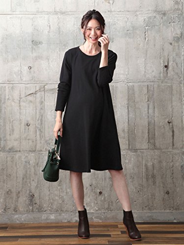 Angeliebe エンジェリーベ マタニティ ワンピース 授乳口付き ラウンドネック ミニ裏毛 Aライン ワンピ 妊婦服 産前 産後 長袖 M ~ L ブラック 22073 22073402