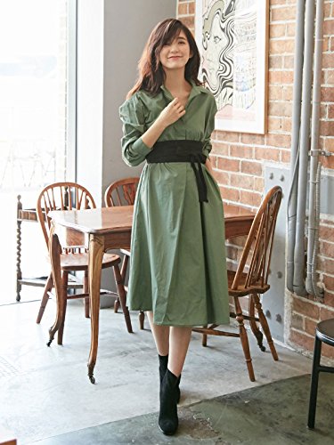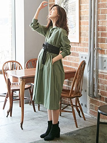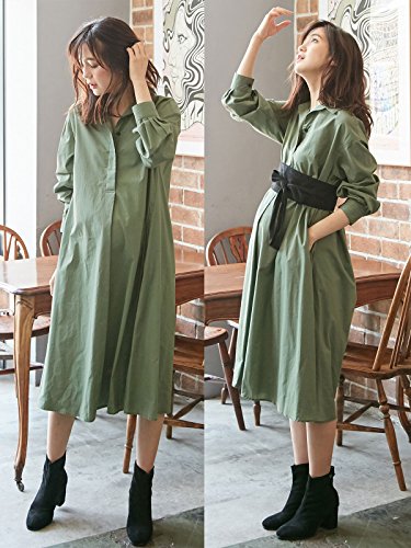 Angeliebe エンジェリーベ マタニティ ワンピース 授乳しやすい ベルト付き シャツ ワンピ 妊婦服 産前 産後 長袖 フリー カーキ 22188 22188300