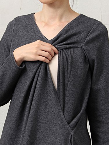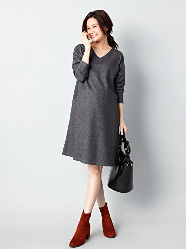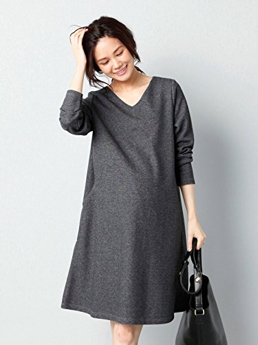 Angeliebe エンジェリーベ マタニティ ワンピース 授乳口付き Vネック Aライン ワンピ 妊婦服 産前 産後 長袖 M ~ L 杢チャコール 22074 22074102