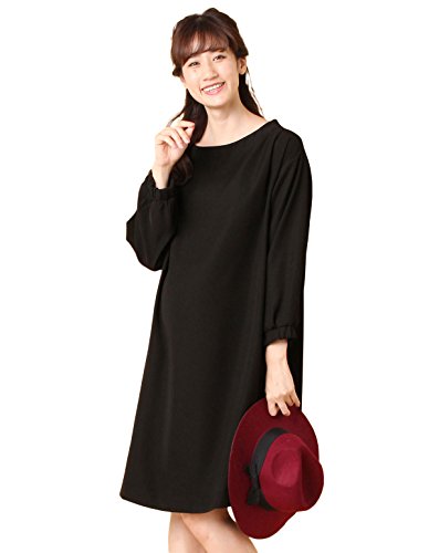 Angeliebe エンジェリーベ マタニティ ワンピース 授乳口付き ボトルボートネック ボリューム スリーブ ワンピ 妊婦服 産前 産後 フリー ブラック 22206 22206100