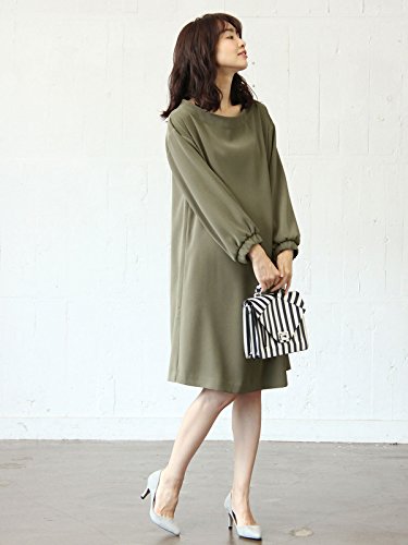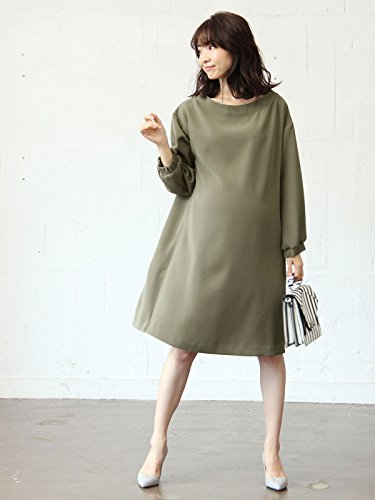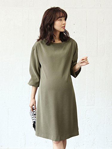 Angeliebe エンジェリーベ マタニティ ワンピース 授乳口付き ボトルボートネック ボリューム スリーブ ワンピ 妊婦服 産前 産後 フリー グレイッシュカーキ 22206 22206400