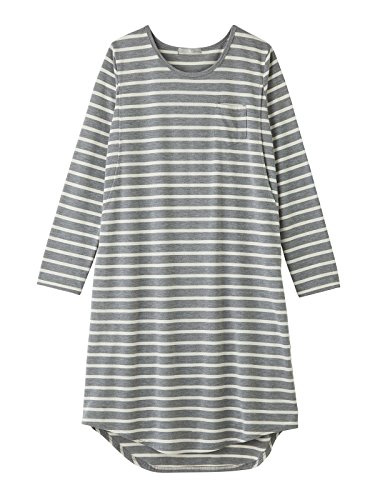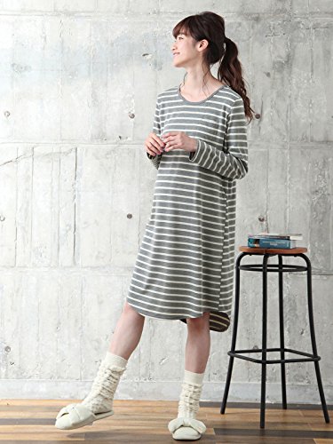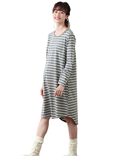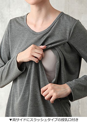 Angeliebe エンジェリーベ マタニティ ワンピース 授乳口付き シンプル ミディ丈 長袖 ワンピ 妊婦服 産前 産後 長袖 M グレー × 生成り 22184 22184260