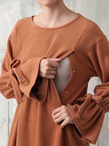 - ●【産前~産後まで使える授乳口付きWフェイス表起毛キャンディスリーブワンピース】ふんわり感が魅力のサカリバ表起毛素材。大きめリボンとキャンディスリーブがキュート。切り替えにスナップタイプの授乳口が付いています。身頃は程よいゆとりがあるストレートシルエットで、お腹も目立ちません。