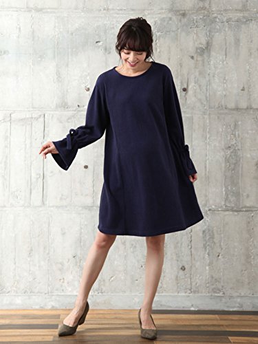 Angeliebe エンジェリーベ マタニティ ワンピース 授乳口付き Wフェイス 表起毛 キャンディスリーブ ワンピ 妊婦服 産前 産後 長袖 L ネイビー 22201 22201370