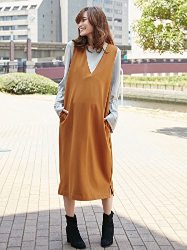 Angeliebe エンジェリーベ マタニティ ワンピース 授乳しやすい ポンチ ロング ジャンパードレス 妊婦服 産前 産後 S~M キャメル 22207 22207401