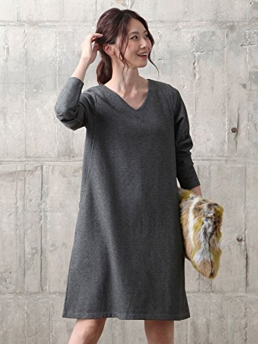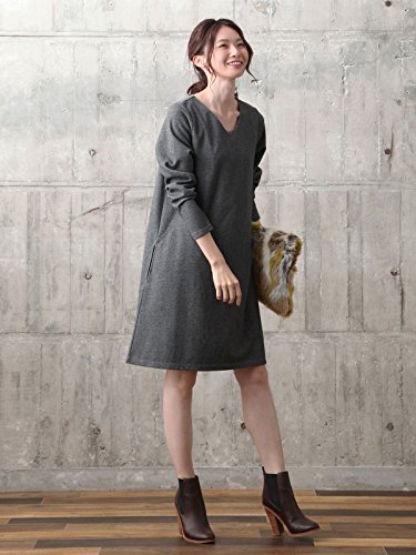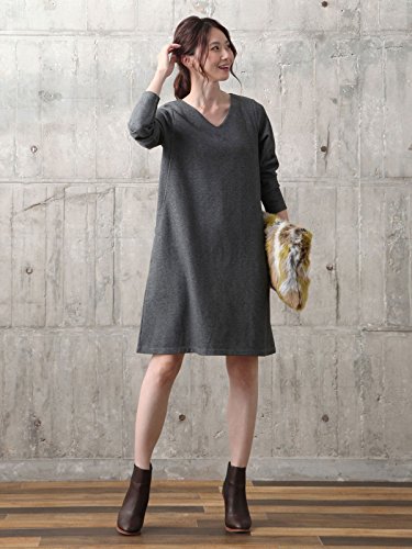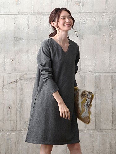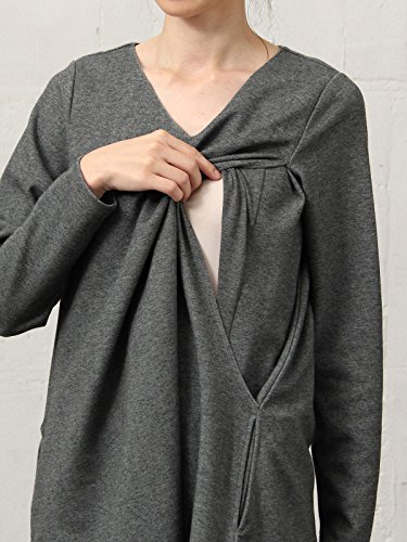 Angeliebe エンジェリーベ 産後 授乳服 Vネック Aライン ワンピース 長袖 授乳口付き ワンピ 授乳ウエア フリー 杢チャコール 30125 30125100