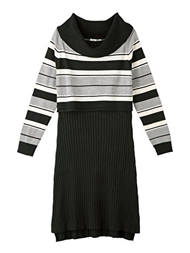 動きやすくてお腹もすっきりみえるIラインシルエットと、シックな配色が上品。マルチボーダートップスとリブスカートのコーディネートが1枚で完成する便利なワンピースです。
