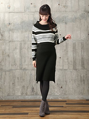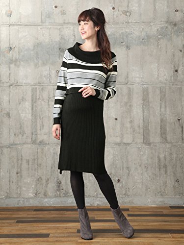 Angeliebe エンジェリーベ マタニティ ワンピース 授乳口付き ウォッシャブル オフショルダー マルチボーダー ワンピ 妊婦服 産前 産後 L ブラック 22104 22104170