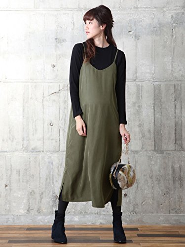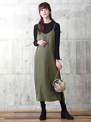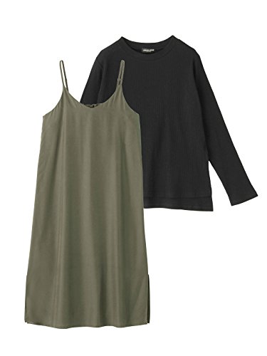 Angeliebe エンジェリーベ マタニティ ワンピース 授乳口付き キャミワンピ & 長袖 リブ トップス セット 妊婦服 産前 産後 長袖 S ~ M カーキ× ブラック 22228 22228201