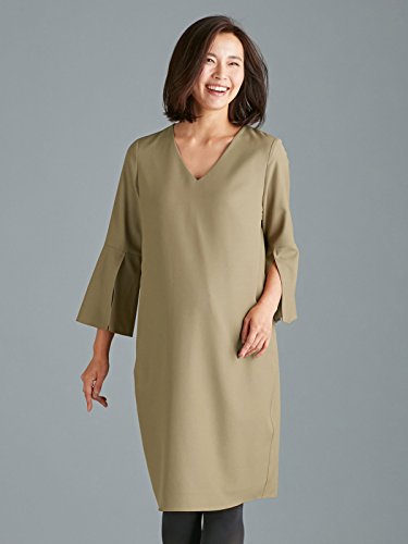 Angeliebe エンジェリーベ マタニティ ワンピース 授乳口付き 深Vネック 9分袖 スリット スリーブ ワンピ 妊婦服 産前 産後 お宮参り M ~ L ベージュ 22237 22237202