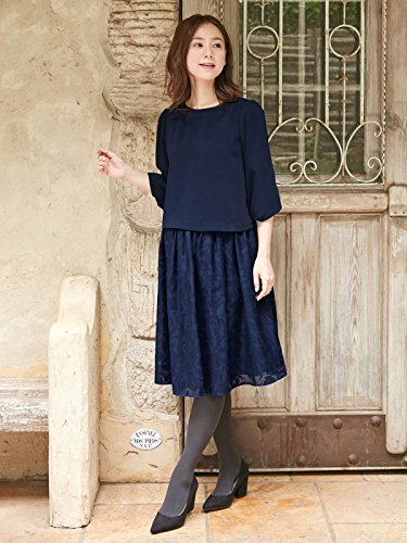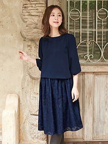 Angeliebe エンジェリーベ マタニティ ワンピース 授乳口付き カットボイル スカート ドッキング ワンピ 妊婦服 産前 産後 お宮参り M ~ L ネイビー 22238 22238102