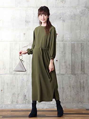 Angeliebe エンジェリーベ マタニティ ワンピース 授乳口付き ボリューム スリーブ ロング ワンピ 妊婦服 産前 産後 長袖 S ~ M カーキ 22239 22239101
