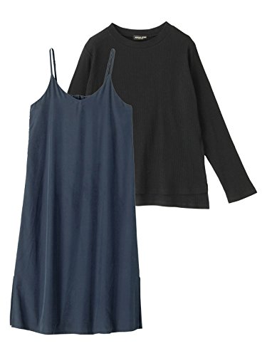 Angeliebe エンジェリーベ マタニティ ワンピース 授乳口付き キャミワンピ & 長袖 リブ トップス セット 妊婦服 産前 産後 長袖 S ~ M ネイビー × ブラック 22228 22228301