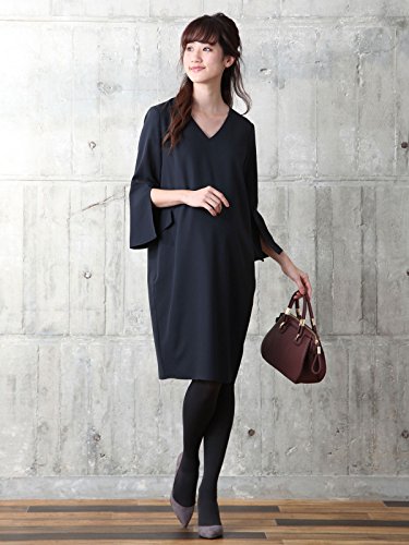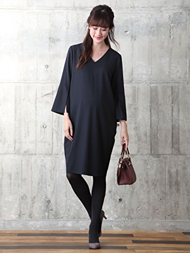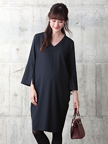 Angeliebe エンジェリーベ マタニティ ワンピース 授乳口付き 深Vネック 9分袖 スリット スリーブ ワンピ 妊婦服 産前 産後 お宮参り S ~ M ネイビー 22237 22237101