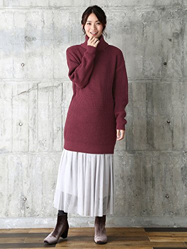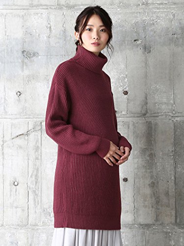 Angeliebe エンジェリーベ マタニティ ワンピース 片畦ニット タートルネック チュニック ワンピ 妊婦服 産前 産後 長袖 フリー バーガンディ 22249 22249300