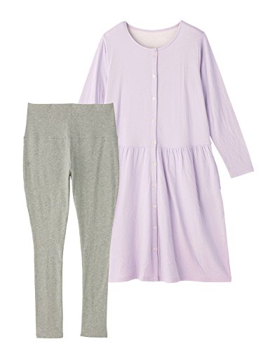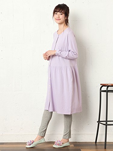 Angeliebe エンジェリーベ マタニティ パジャマ 授乳しやすい 接結ガーゼ ニット 前開き ワンピ × 産後も使える レギンス セット ナイティ 産前 産後 妊婦服 フリー ラベンダー 22296 22296400
