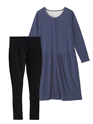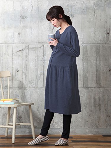 Angeliebe エンジェリーベ マタニティ パジャマ 授乳しやすい 接結ガーゼ ニット 前開き ワンピ × 産後も使える レギンス セット ナイティ 産前 産後 妊婦服 フリー 杢ネイビー 22296 22296300