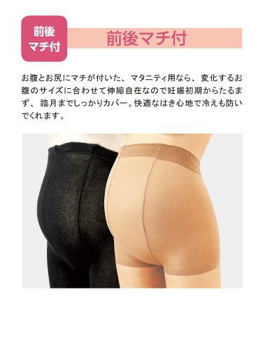 - ●あったか素材、産前対応、日本製、前後マチ付