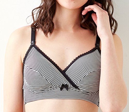 Angeliebe エンジェリーベ マタニティ インナー アンダー 楽々 ブラトップ 下着 産前 産後 ブラジャー 授乳ブラ L ブラック ボーダー