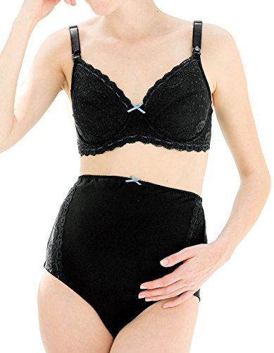 Angeliebe エンジェリーベ マタニティ インナー 授乳 兼用 ブラジャー & マタニティ ショーツ 下着 パンツ 産前 産後 ソフトワイヤー 授乳ブラ D65 ブラック