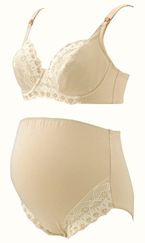 Angeliebe エンジェリーベ マタニティ インナー 授乳 兼用 ブラジャー & マタニティ ショーツ 下着 パンツ 産前 産後 ソフトワイヤー 授乳ブラ B75 ベージュ