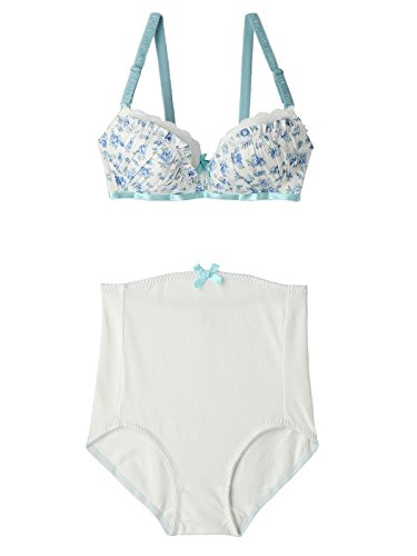 Angeliebe エンジェリーベ マタニティ インナー 花柄 ブラ & ショーツ 授乳 下着 ブラジャー パンツ 産前 産後 LL サックス
