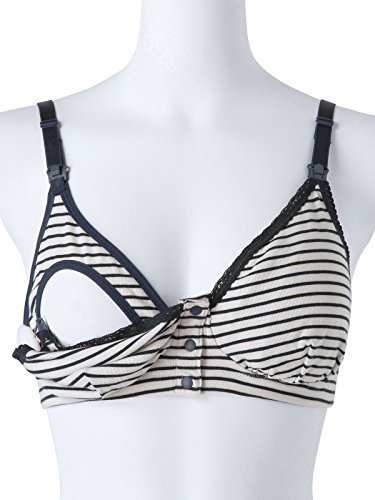 Angeliebe エンジェリーベ ボーダー ウインドウ オープン ブラ トップ マタニティ L ホワイト × ネイビー