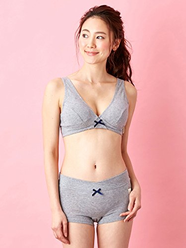 Angeliebe エンジェリーベ & 犬印本舗 コラボ マタニティ インナー 授乳対応 オーガニック コットン ハーフトップ ブラジャー 産前 産後 下着 M グレー 24472 24472220