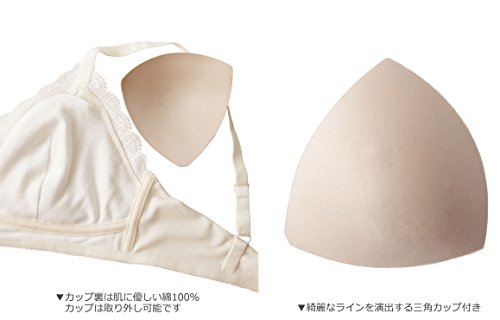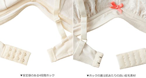 - ●【2種類のレースを使った、エンジェリーベだけのフェミニンデザイン】オフレースをベールのように重ねて、細幅レースを組み合わせた甘めデザインが魅力。ふんわりとバストを包み込むやわらかなブラトップです。着たままカップ部分を引き下げて簡単に授乳できます。楽ちんな着け心地でお家でのリラックスタイムにぴったり。カップ裏は肌に優しい綿100%。カップは取り外し可能です。アンダーの上部分はゴムなしで食い込み感を軽減。しなやかでやわらかな素材が程よくフィットします。
