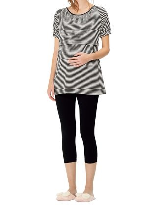 Angeliebe エンジェリーベ 授乳 口 付 半袖 ボーダー T & レギンス セット フリー ブラック × オフ 白