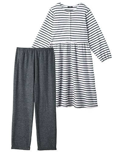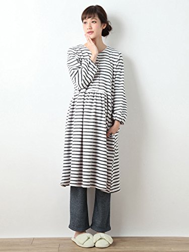 Angeliebe エンジェリーベ 授乳 しやすい パイル ボーダー ふわ ふわ 裏 起毛 パジャマ フリー チャコール